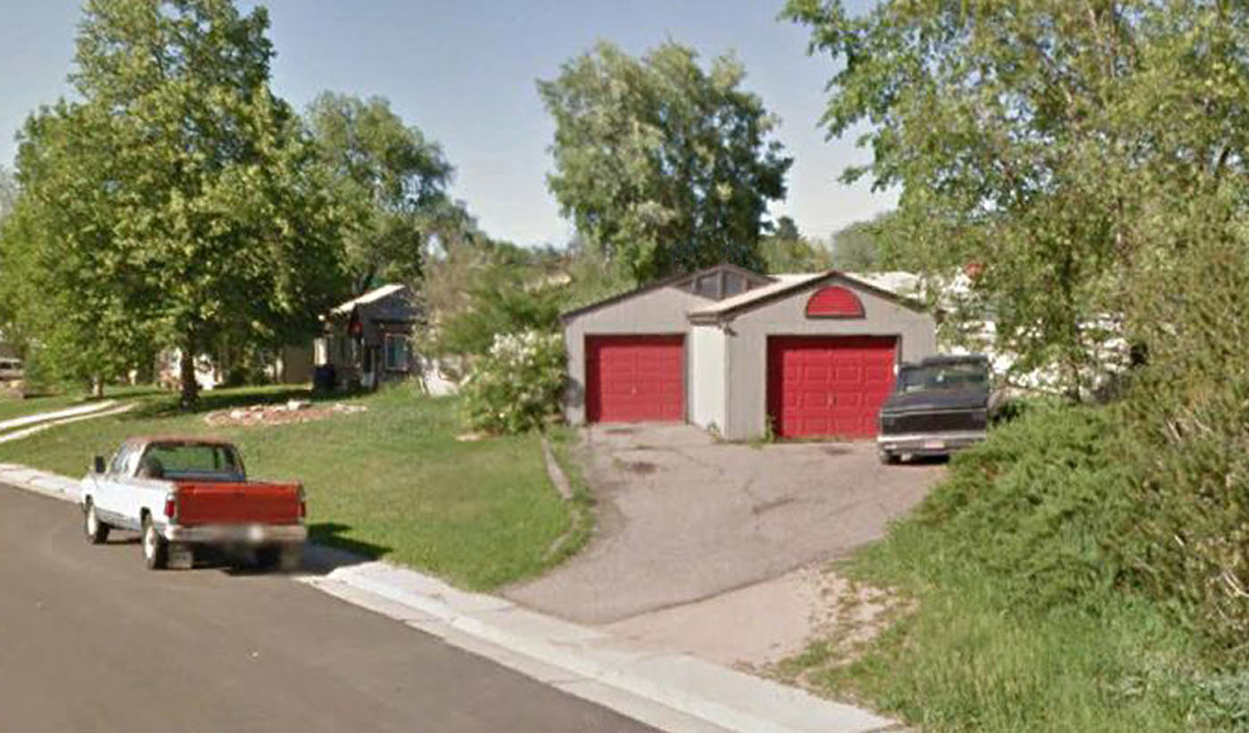 This overhead shot from Google Earth shows my former 2,400 square foot two-bedroom Boulder studio, with its up to 20' high cathedral ceilings, attached to my sister's 3,600 square foot four-bedroom suburban ranch home, counting the garage and full basement. The flat-roofed connecting structure housed a large circular cedar hot tub and a 6' diameter domed Plexiglas window with a great view of the Colorado Rockies' Front Range. Unfortunately, my sister and I have parted ways.