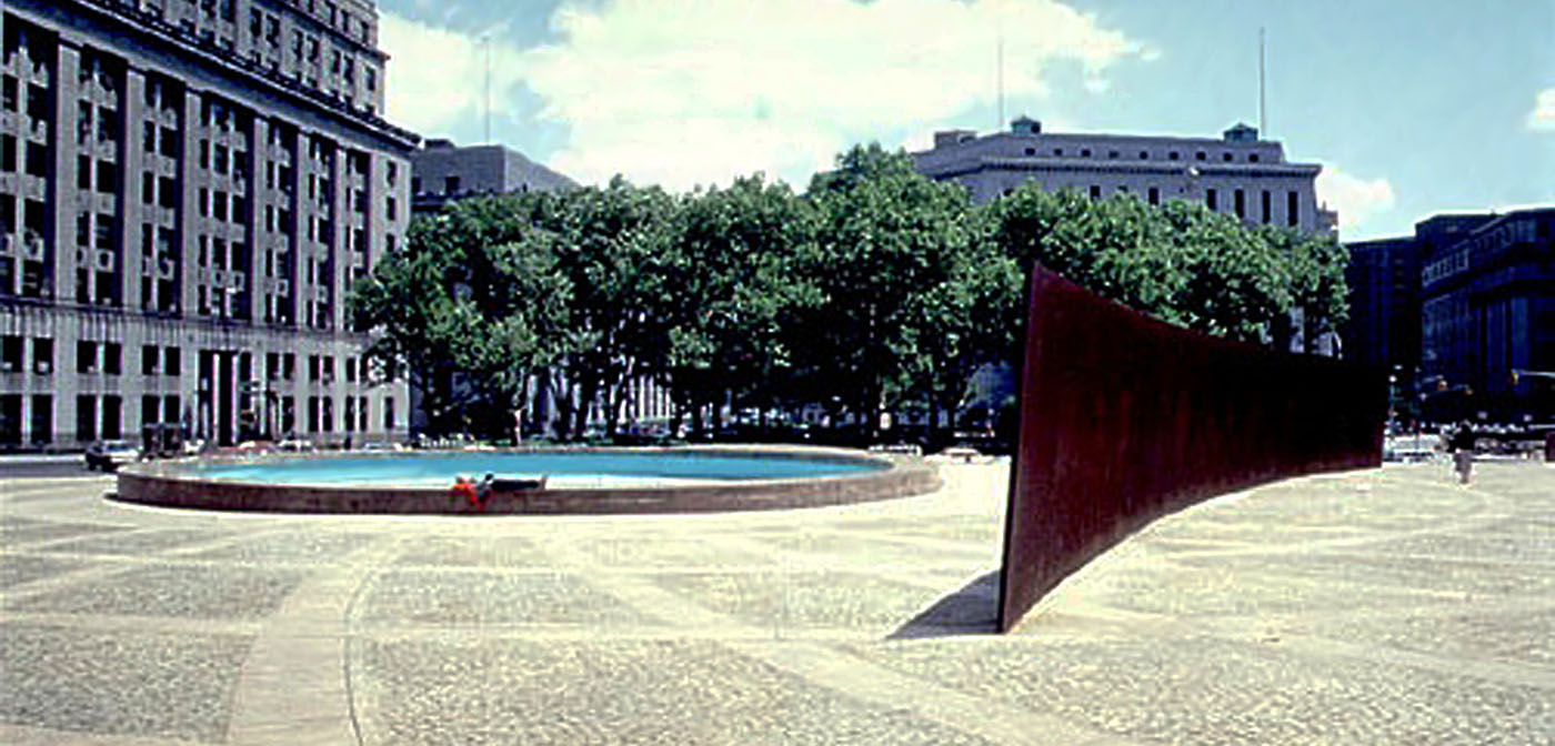 The unceremonious destruction of "Outlet" was disappointing, but a crime against sculpture occurred in New York City, when a group of tenants and employees at the Jacob K. Javits Federal Building on Foley Federal Plaza agitated to have world-famous Richard Serra's 1981 "Tilted Arc" (financed by the GSA's 1% Arts-in-Architecture program) dismantled after a lawsuit and removed because folks couldn't see each other across the plaza when eating lunch! The artist refuses to erect this fantastic site-specific sculpture anywhere else.