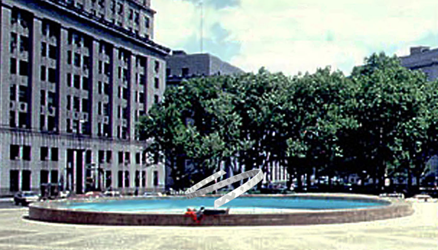 More realistically, the crowd-funded textured aluminum "Recurve" would be sited in the Foley Plaza fountain to discourage gawkers who might be crushed if the concealed electromagnet under the floor of the water-filled pool ever had its power cut off. I have not heard back from a famous physics professor, Brian Greene, to see if this is feasible, but future lunchtime viewers should be OK with it in any case, and it might save them from the Demons of Art Haters for rejecting "Tilted Arc!"